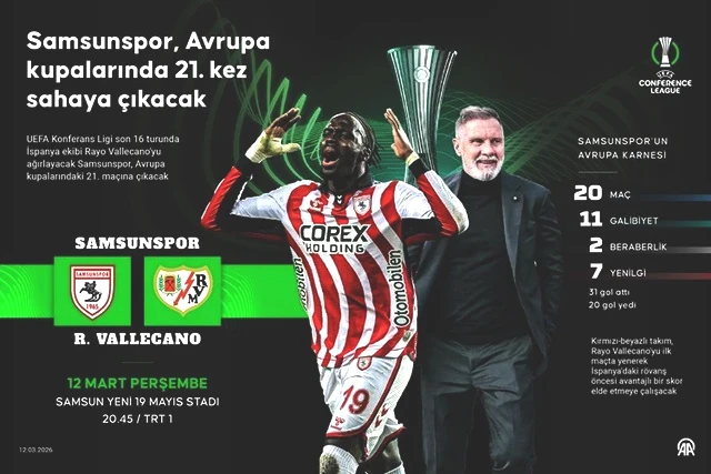 Samsunspor-Rayo Vallecano karşılaşması, 12 Mart Perşembe akşamı saat 20.45'te gerçekleştirilecek.